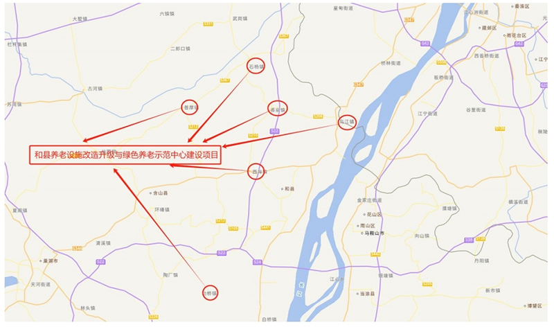 和县石杨镇、乌江镇、西埠镇、香泉镇、功桥镇、善厚镇养老机构改造提升项目,以及新建长三角(和县)绿色养老示范中心的整体运营权。