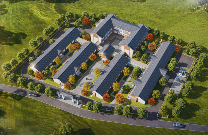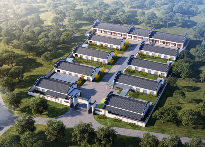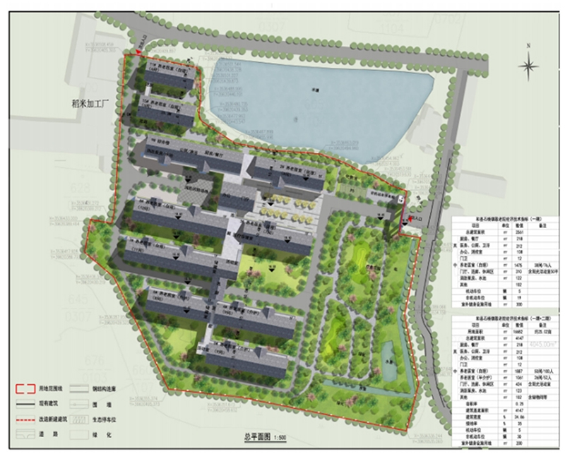 2.新建示范中心部分:总占地面积约38.07亩,总建筑面积18000平方米,包括养老公寓、管理用房及配套服务设施,致力于打造集生态居住、康复护理、文娱社交于一体的综合性绿色养老社区。